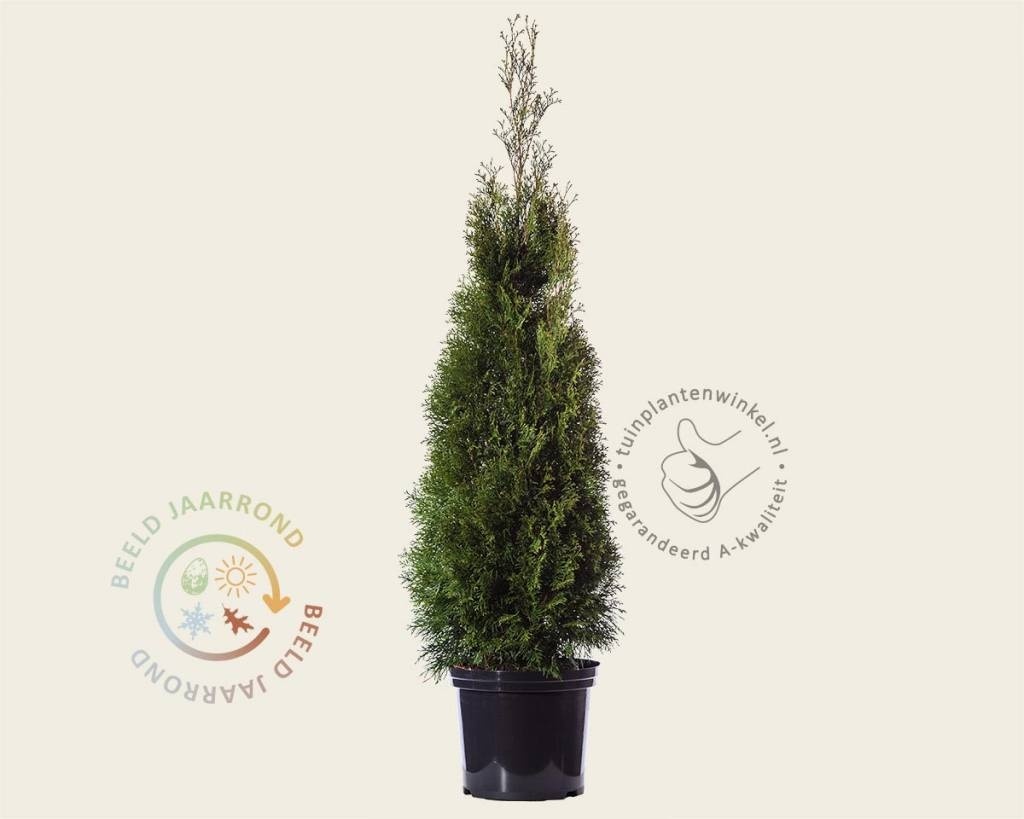 Thuja occidentalis 'Smaragd' in pot of Levensboom