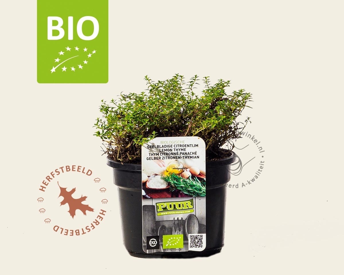 Geelbladige citroentijm heeft, zoals de naam al zegt, een heerlijk geurend, goudgroen(aureus=goud) blad, dat een mooi contrast vormt met de kleine, lilakleurige bloemetjes, die bijen en vlinders aantrekken. De geur is goed te ruiken als u het blad aanraakt of kneust met de vingers. Thymus citriodorus 'Aureus' blijft laag en is daarom ook als bodembedekker te gebruiken. De tijm wordt in de mediterrane keuken gebruikt.