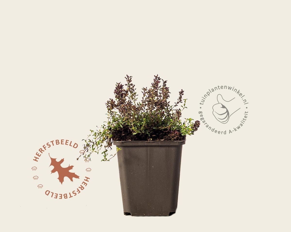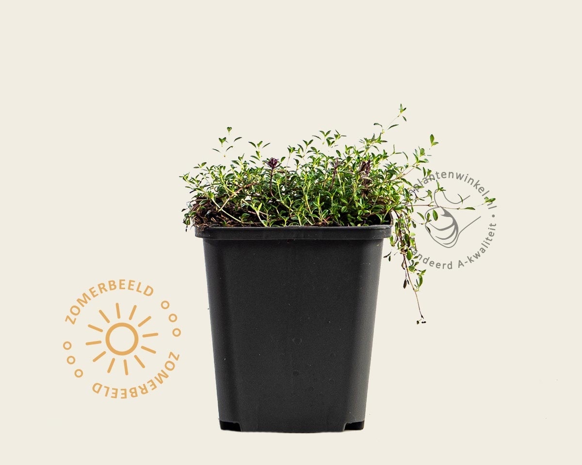 Antwoord: Kruiptijm, Thymus praecox Çoccineus' is matig winter hard vandaar dat we deze ook het beste op een beschutte plek in de tuin kunnen zetten in de volle zon, dus goed winterhard is de plant helaas niet altijd. Deze plant houdt zeken niet van een natte standplaats.