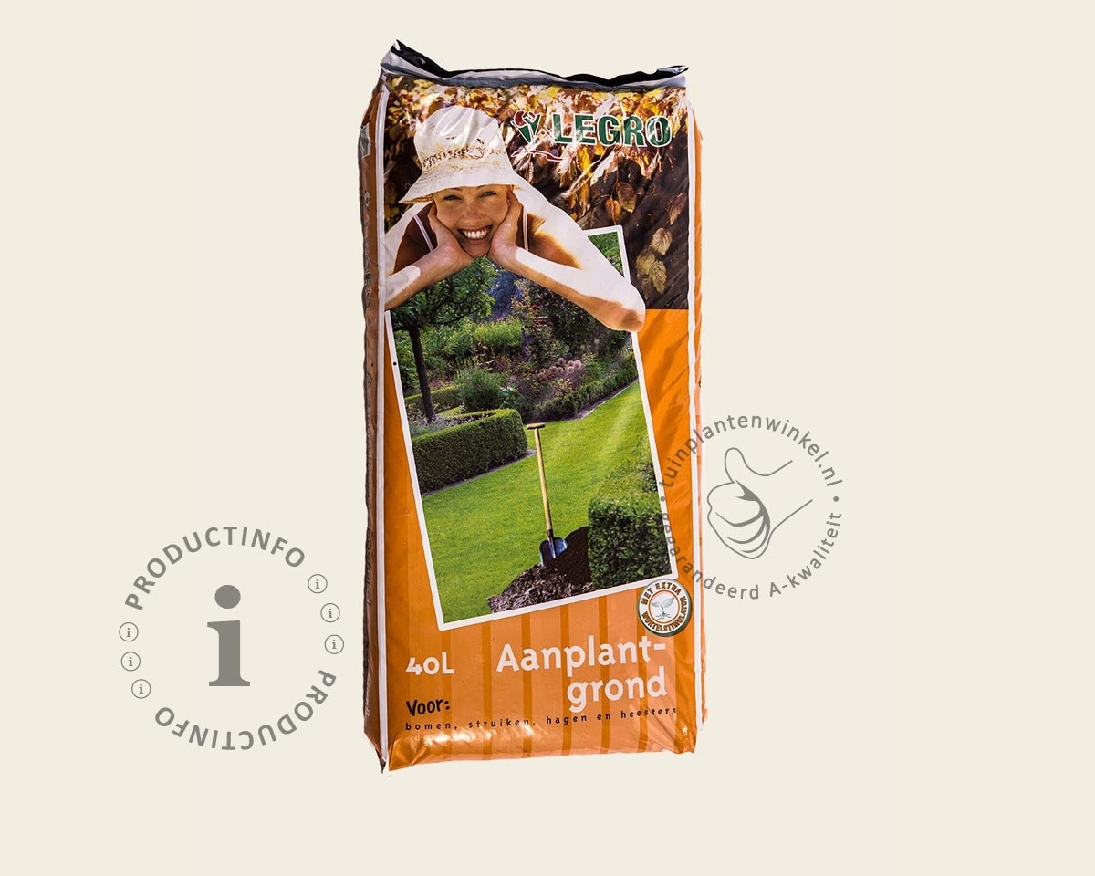 Aanplantgrond wordt gebruikt bij de aanplant van bomen, heesters en alle andere tuinplanten in uw tuin. Het zorgt voor een goede grondslag, zodat uw planten meteen goed kunnen gaan groeien. Aan aanplantgrond is een zogenaamde actieve wortelstimulator toegevoegd. Deze wortelstimulator zorgt ervoor dat de wortels een goede start maken. Deze wortelstimulator levert bij alle soorten tuinplanten een positieve bijdrage aan de beworteling en doorgroei. U kunt aanplant puur gebruiken, of mengen door de bestaande grond. Aanplantgrond is niet geschikt voor gebruik in bloempotten.