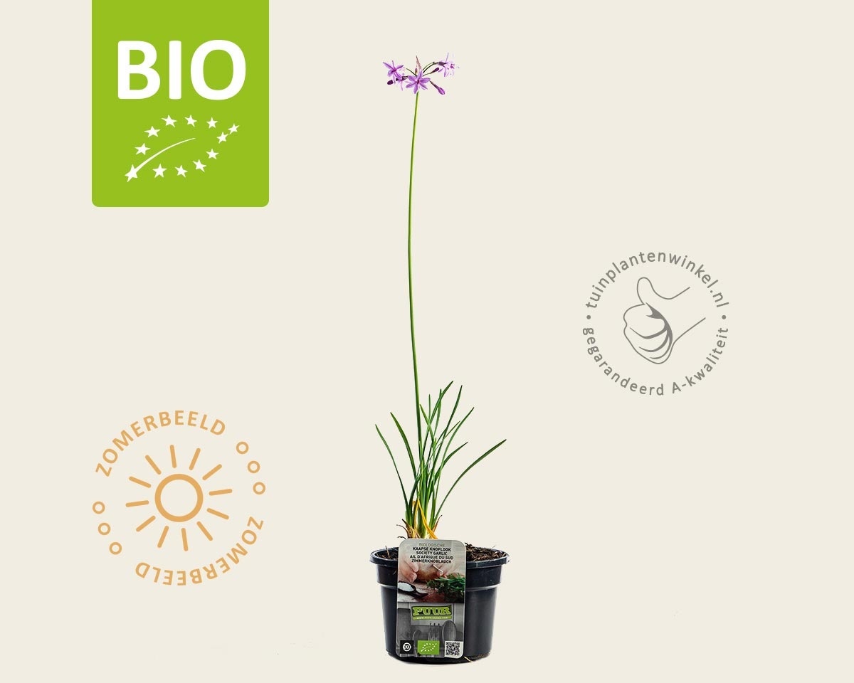 Als u van look- en knoflookachtige smaken en aroma’s houdt, is Kaapse knoflook u zeer aan te bevelen. Woorden gaan te kort schieten….. de werkelijke geuren, kleuren en smaken die Tulbaghia violacea voortbrengt, zult u zelf moeten ervaren. Het toepassen van de bloemen en bloemknoppen en ook het blad openen werkelijk een eldorado. Door de langzame groei is de tuinplant relatief duur en exclusief. Wilt u ten volle genieten van Kaapse knoflook, dan kunt u overwegen meerdere exemplaren aan te schaffen ofwel wat geduld uit te oefenen.