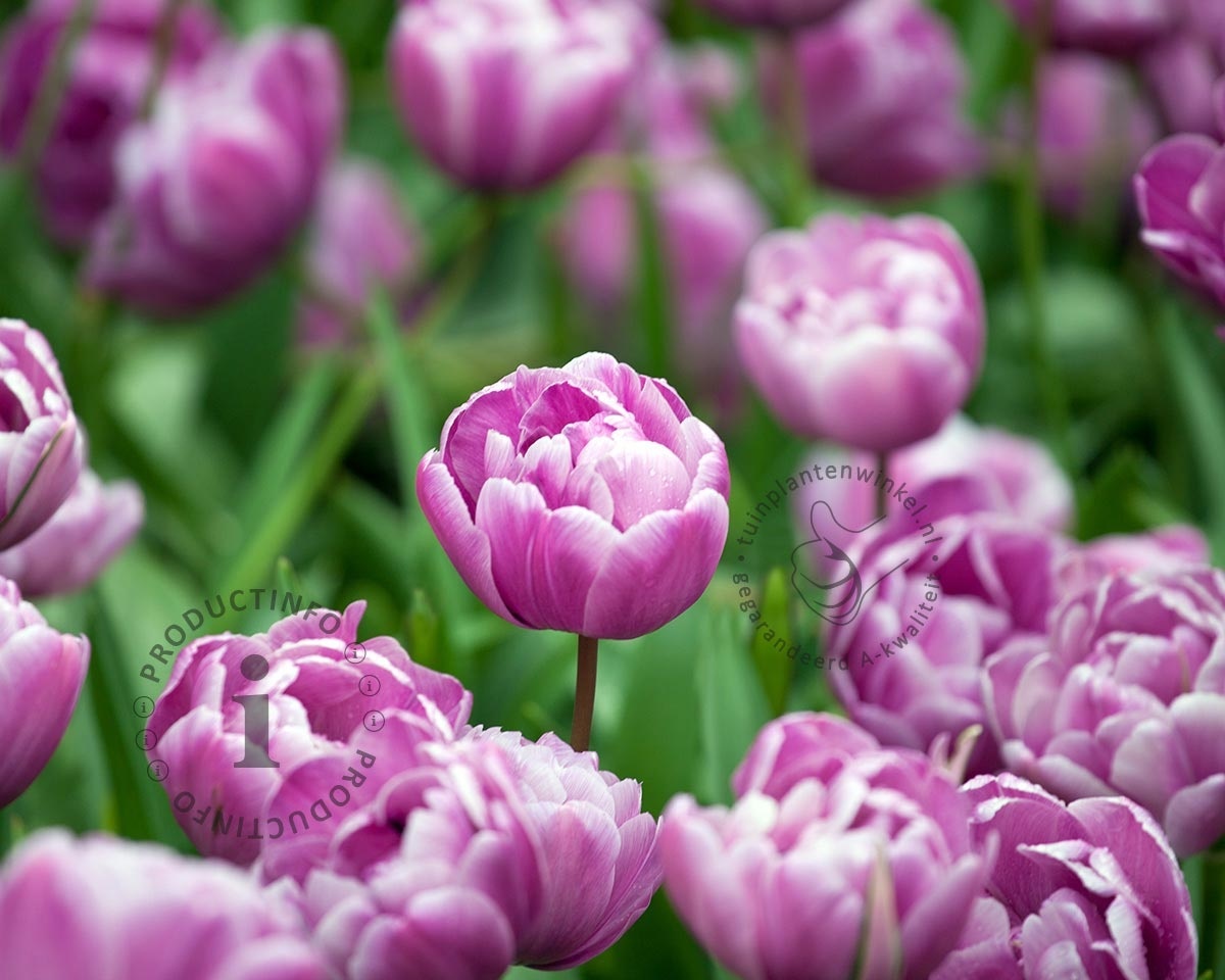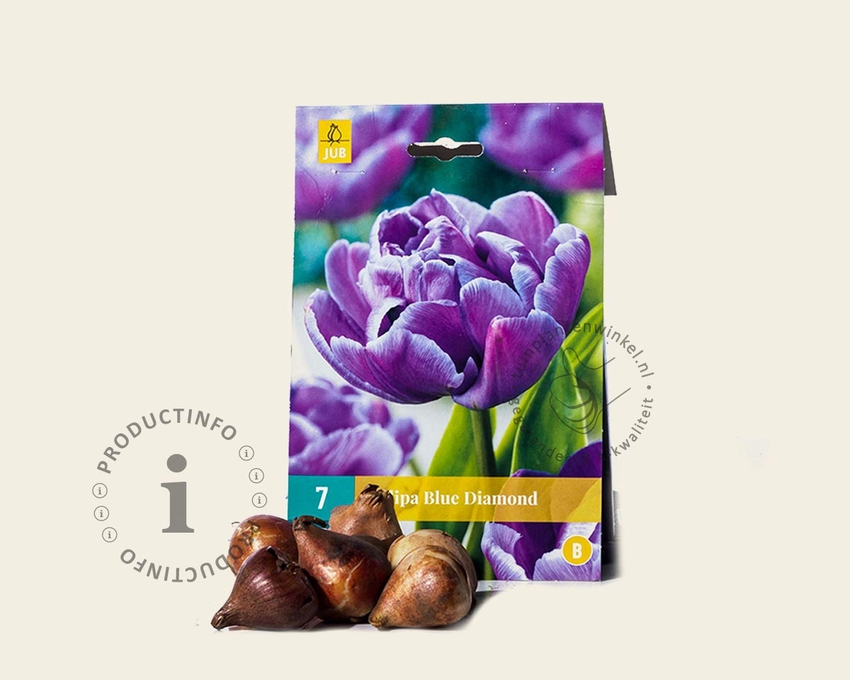 De Tulp is voor Nederland het meest belangrijke bolgewas. De Nederlandse tulpenteelt en -veredeling is wereldberoemd. Er zijn 1000en soorten tulpen. Tuinplantenwinkel biedt een assortiment aan van sterke soorten die opvallen door hun kleur of bloeiwijze. De Tulipa 'Blue Diamond' is een dubbelbloemige tulp met paars/witte bloemkleur. De bloeiwijze van deze tulp lijkt wel wat op die van de Pioenroos. Vandaar dat ze ook wel eens Pioentulpen genoemd worden. De bloeitijd van deze soort is laat (mei).