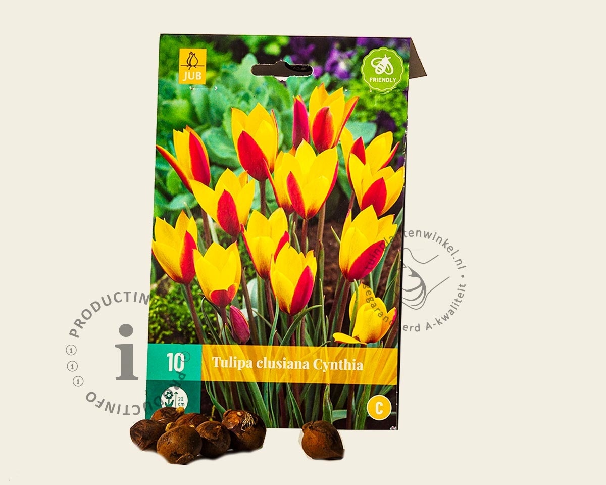 Bloembollen worden in de herfst en begin van de winter aangeplant. Let op dat u de Tulipa clusiana 'Cynthia' tijdig bestelt, want ze zijn maar een beperkte periode leverbaar. Plantdiepte van deze bloembol is ongeveer 8 cm onder de grond. (vanaf de onderkant van de bloembol gemeten)