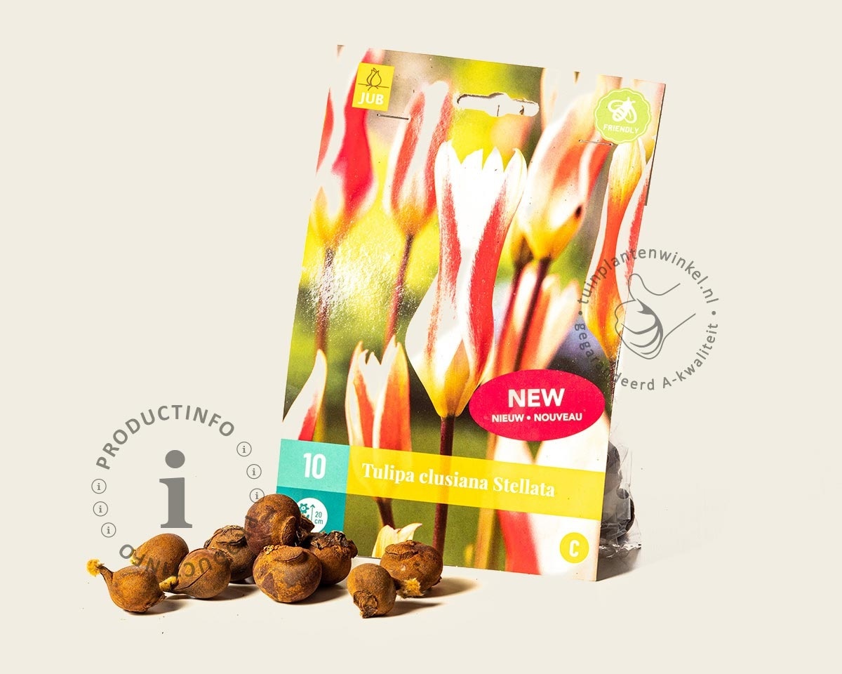 Bloembollen worden in de herfst en begin van de winter aangeplant. Let op dat u de Tulipa clusiana 'Stellata' tijdig bestelt, want ze zijn maar een beperkte periode leverbaar. Plantdiepte van de bollen is ongeveer 8 cm onder de grond. (vanaf de onderkant van de bloembol gemeten)