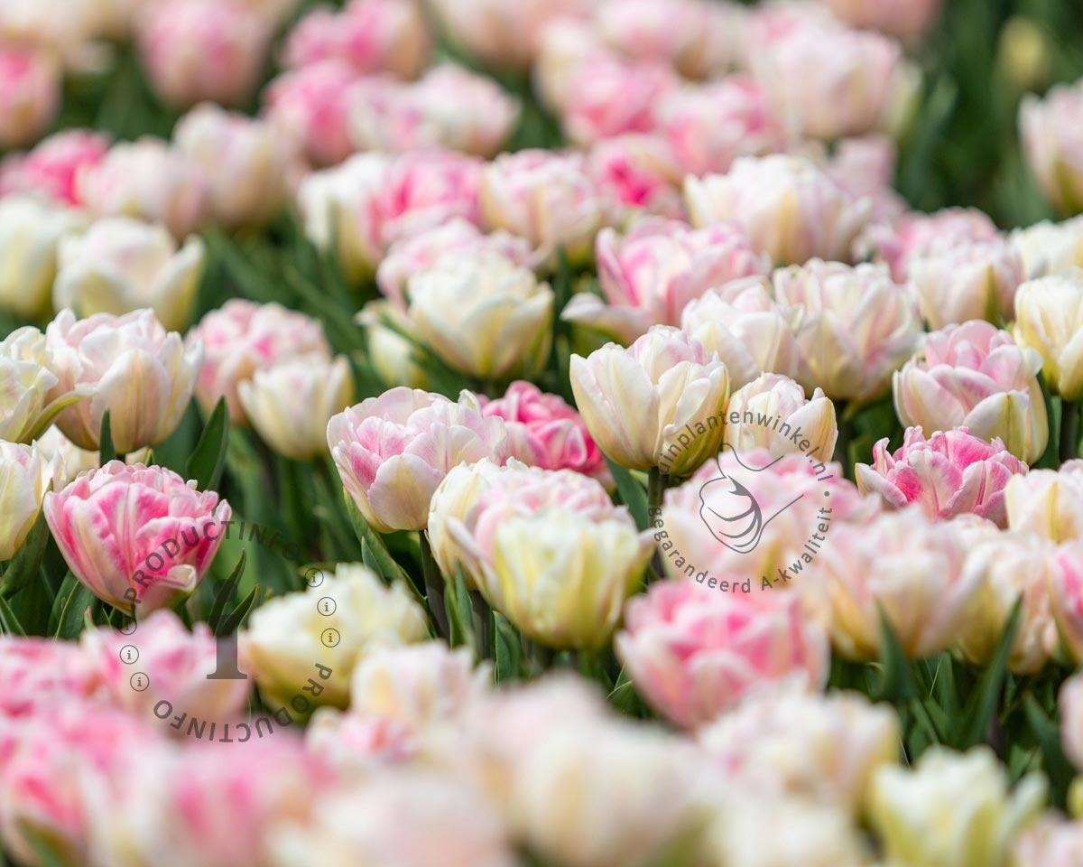 De Tulp is voor Nederland het meest belangrijke bolgewas. De Nederlandse tulpenteelt en -veredeling is wereldberoemd. Er zijn 1000en soorten tulpen. Tuinplantenwinkel biedt een assortiment aan van sterke soorten die opvallen door hun kleur of bloeiwijze. Deze Double Sensation is een mix van de witbloeiende 'Mount Tacoma' en de rozebloeiende 'Angelique'. Beide zijn het Dubbelbloeiende late tulpen. Vanwege hun bloemvorm die wel wat weg heeft van een Pioenroos, worden deze soorten ook wel eens Pioentulpen genoemd. Bloeitijd is mei.