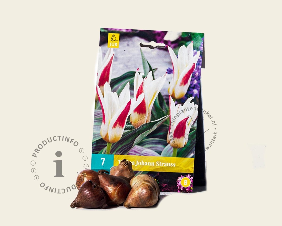 Bloembollen worden in de herfst en begin van de winter aangeplant. Let op dat u de Tulipa kaufmanniana 'Johann Strauss' tijdig bestelt, want ze zijn maar een beperkte periode leverbaar. Plantdiepte van deze bloembol is ongeveer 10 cm onder de grond. (vanaf de onderkant van de bloembol gemeten)