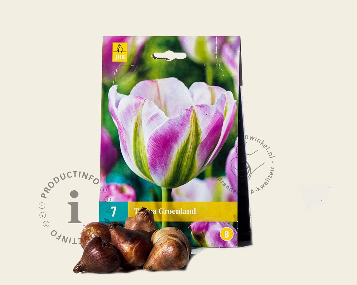 Bloembollen worden in de herfst en begin van de winter aangeplant. Let op dat u de Tulipa viridiflora 'Groenland' tijdig bestelt, want ze zijn maar een beperkte periode leverbaar. Plantdiepte van deze bloembol is ongeveer 10 cm onder de grond. (vanaf de onderkant van de bloembol gemeten). Tulpen kunnen beter iets dieper gezet worden, dan te ondiep. Dit beschermt ze tegen kou in de winter en uitdroging in droge en warme zomers.