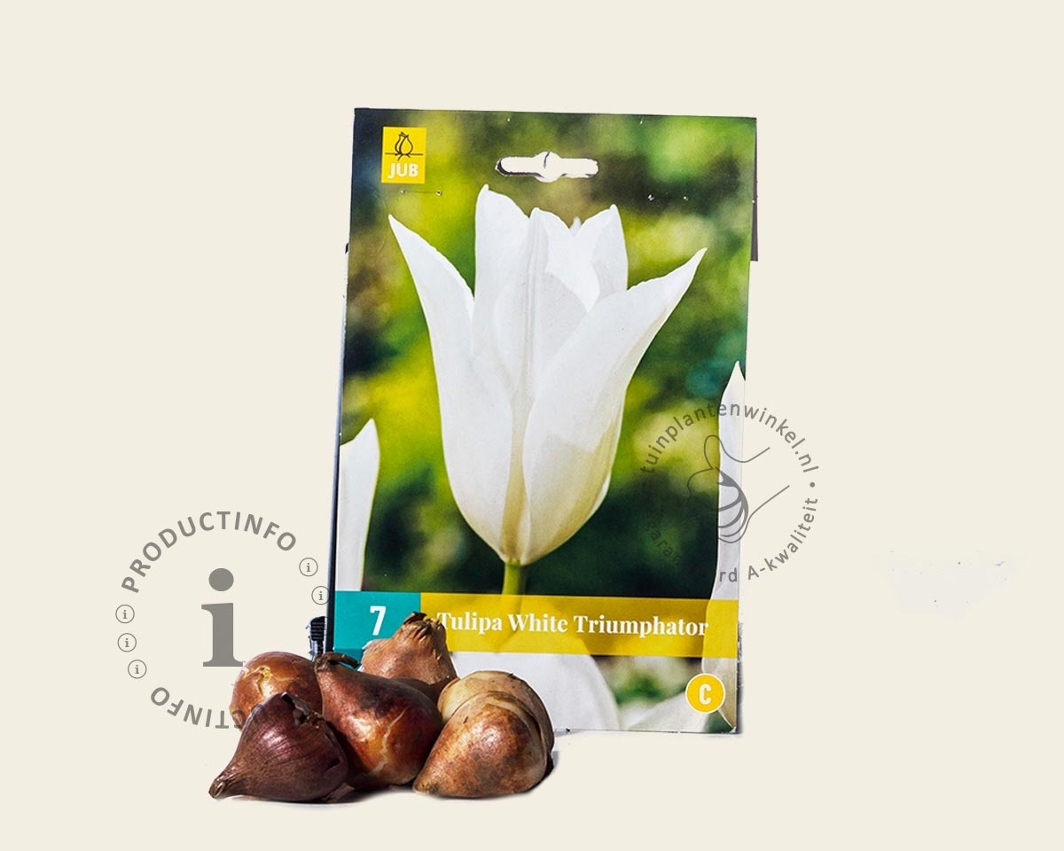 De Tulipa 'White Triumphator' is een zuiverwitte vorm van de leliebloemige tulp. Hij heeft sierlijke puntige bloembladeren waarvan de bovenzijde licht naar buiten gebogen staat. Een belangrijk kenmerk van deze tulpen is de lange bloeitijd. Deze witte tulp kan prachtig uitkomen als hij in een groepje wordt aangeplant. Daarnaast kan de Tulipa 'White Triumphator' gecombineerd worden met werkelijk elke andere kleur.