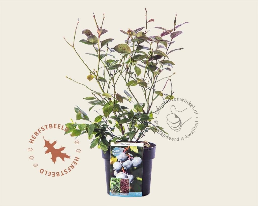 Deze blauwe bes is een nieuwe ontdekking uit de Verenigde Staten. De Vaccinium corymbosum 'Blue Suede' onderscheidt zich door een iets compactere groei. De rijke dracht en goede smaak van de bessen maken het plaatje compleet. In het najaar verkleurt het blad naar rode en wijnrode tinten.