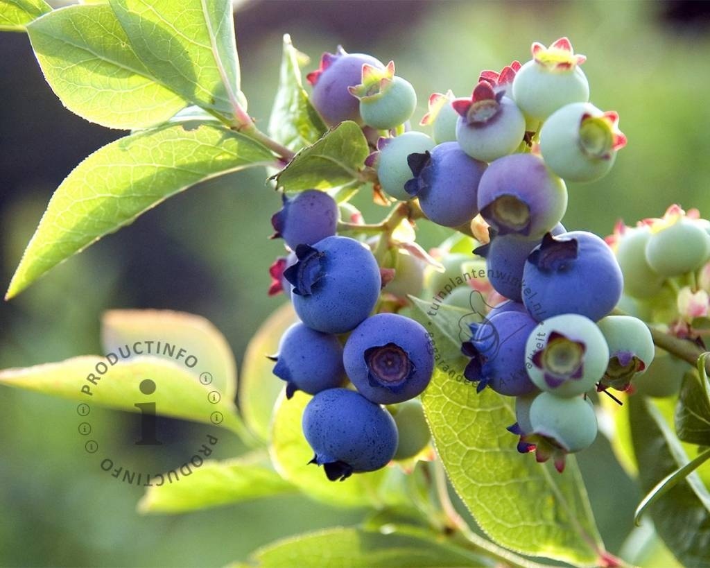 Vaccinium corymbosum 'Bluetta' is een middelgrote loofstruik die in de zomer heerlijke, blauwe bessen levert en in de herfst fungeert als sierplant met mooi verkleurende, rode bladeren. Bij deze tuinplant groeien in de lente klokvormige, witte bloemen in clusters aan de jonge twijgen en daaruit vormen zich in de zomer de blauwe bessen. Deze bessen zijn zo te eten en bevatten veel vitamines en antioxidanten, maar zijn ook erg geschikt voor het maken van jam of sap.