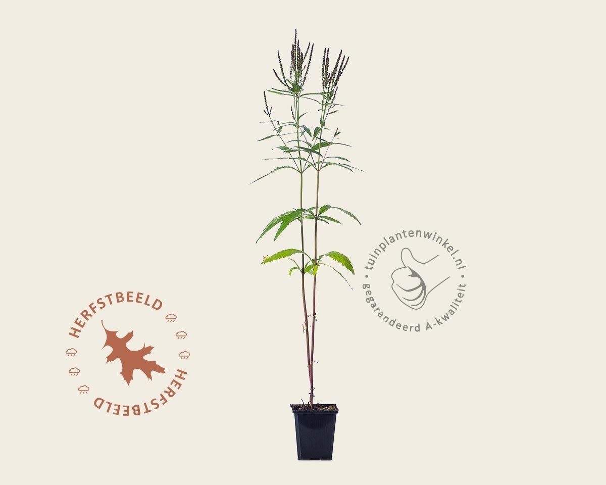 Verbena hastata bloeit van juli tot oktober met paarse, opstaande, aarvormige bloemen, die zich kunnen vertakken en zo weer nieuwe bloemen vormen. Deze tuinplant is geschikt voor in de border, in rotstuinen en ook als kuipplant op het balkon of terras. Ijzerhard is vorstbestendig en verliest in de winter zijn bladeren.