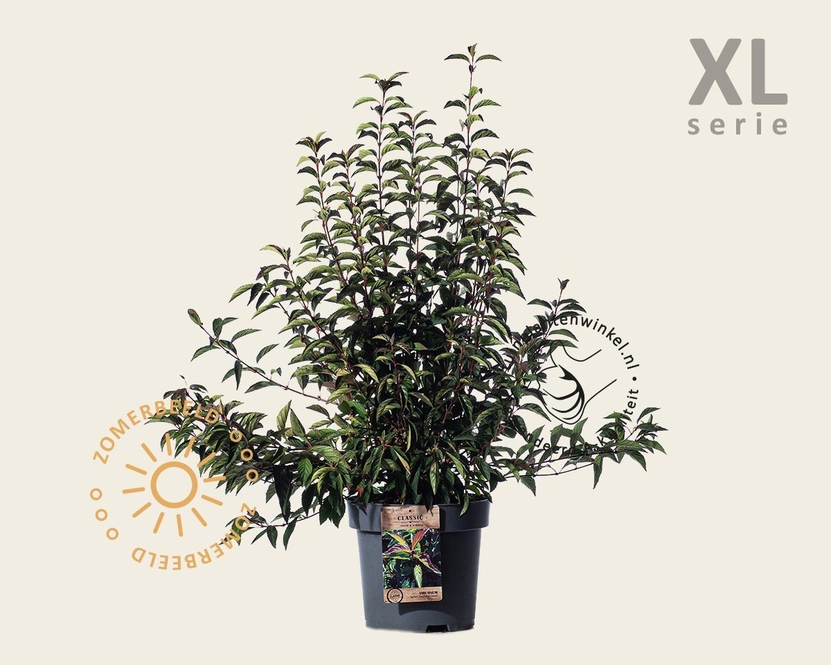 Als de sneeuw naar beneden valt, is er een grote kans dat deze tuinplant in uw tuin bloeit. De Nederlandse naam heeft de plant hier echter niet aan te danken. Veel familieleden uit de viburnum-familie bloeien met ronde, witte bloemtrossen en hebben voor de naam gezorgd. De Viburnum farreri 'December Dwarf' bloeit echter met kleine bundels, lichtroze bloemen. De bloei vindt plaats op een ongewoon tijdstip: de winter. Juist wanneer bijna alle planten het voor gezien houden, blinkt deze heester uit in kleur. De bloemen geuren ook nog eens heerlijk. Viburnum farreri 'December Dwarf' lijkt wat betreft bloei en groei op de Viburnum bodnantense maar groeit veel compacter en wordt hooguit 100 centimeter groot. De plant leent zich dus ook gemakkelijk voor iets kleinere borders en tuinen.