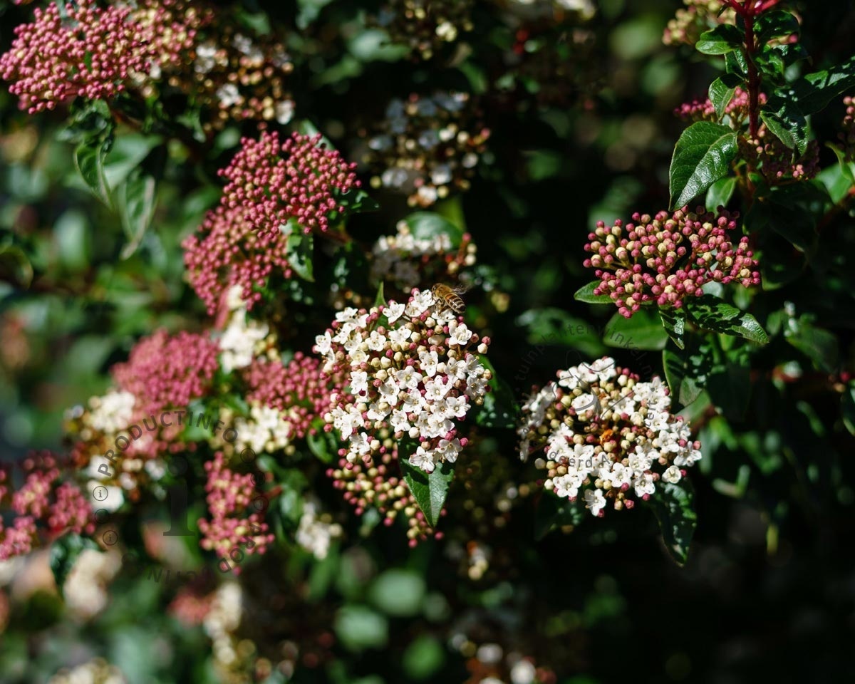 Viburnum tinus XL is een struik, die lang bloeit; in september verschijnen er schermen met kleine, roze knopjes; vanaf november tot april bloeit Sneeuwbal met schermen van rozewitte bloemetjes, waar vlinders en bijen op af komen. Na de bloei verschijnen er donkere bessen aan de plant. XL wijst op het formaat van deze tuinplant bij aanschaf; voor wie al meteen een wat vollere struik wil. Viburnum tinus is wintergroen en redelijk winterhard, kan solitair, als haag of in een pot op het balkon of terras aangeplant worden. Het is een van oorsprong mediterrane plant: