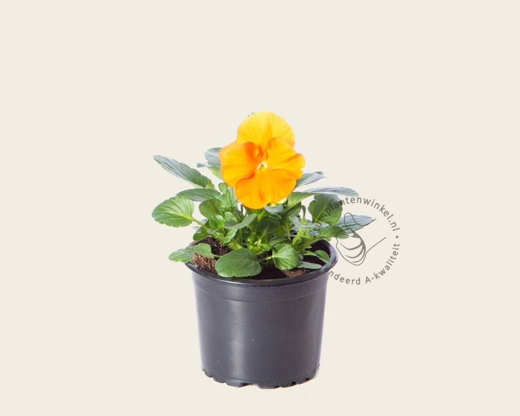 Grootbloemige winterviolen verschijnen in vele kleuren. Deze bloeit met oranje effen gekleurde kroonbladeren. Dit viooltje bloeit gedurende de hele winter. Bij vorst beschermt de plant zichzelf door plat op de grond te gaan liggen. Wanneer de temperatuur boven het vriespunt stijgt staat het viooltje weer fier overeind. De bloei duurt voort tot diep in het voorjaar. Afhankelijk van de temperatuur blijft dit éénjarig plantje mooi tot eind april - juni.