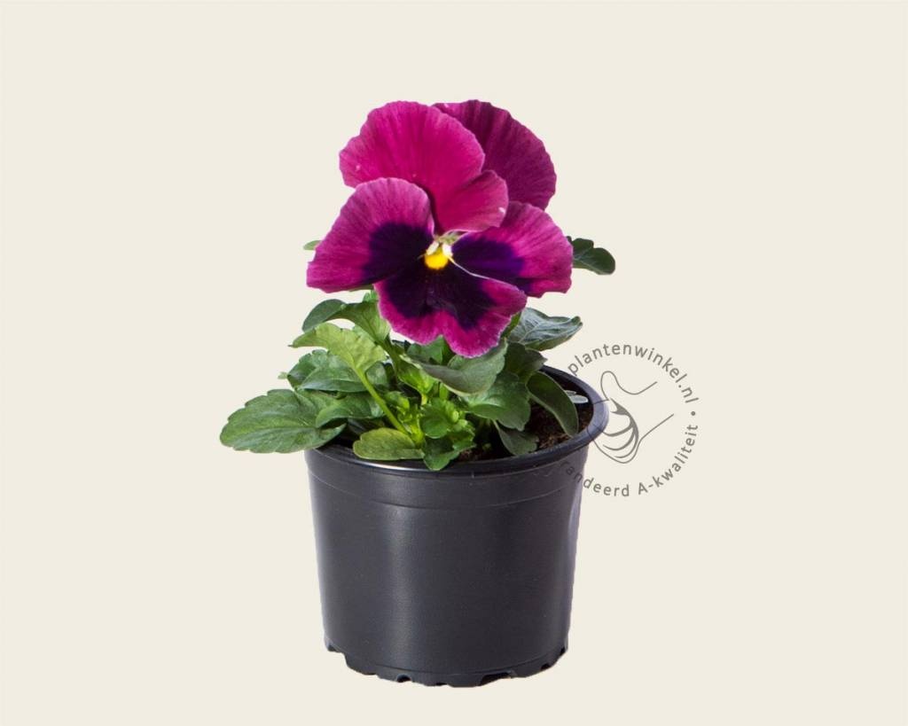 Grootbloemige winterviolen verschijnen in vele kleuren. Deze bloeit met rozerode gekleurde kroonbladeren. Het hart van de bloem heeft een dieppaarse, bijna zwarte, tekening. Dit viooltje bloeit gedurende de hele winter. Bij vorst beschermt de plant zichzelf door plat op de grond te gaan liggen. Wanneer de temperatuur boven het vriespunt stijgt staat het viooltje weer fier overeind. De bloei duurt voort tot diep in het voorjaar. Afhankelijk van de temperatuur blijft dit éénjarig plantje mooi tot eind april - juni.