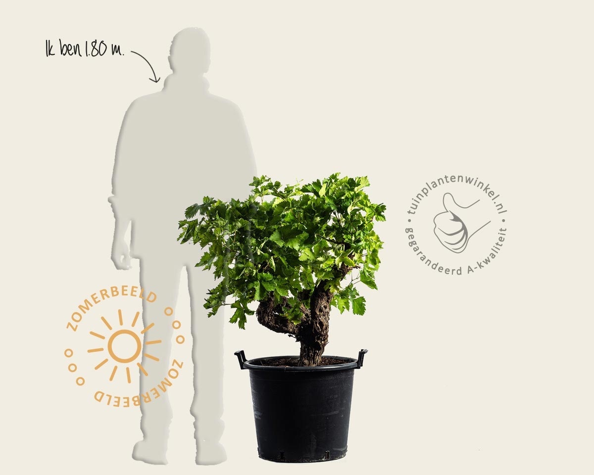 Deze oude druivenrank staat graag zonnig en kan zowel in een pot of in de tuin worden aangeplant.