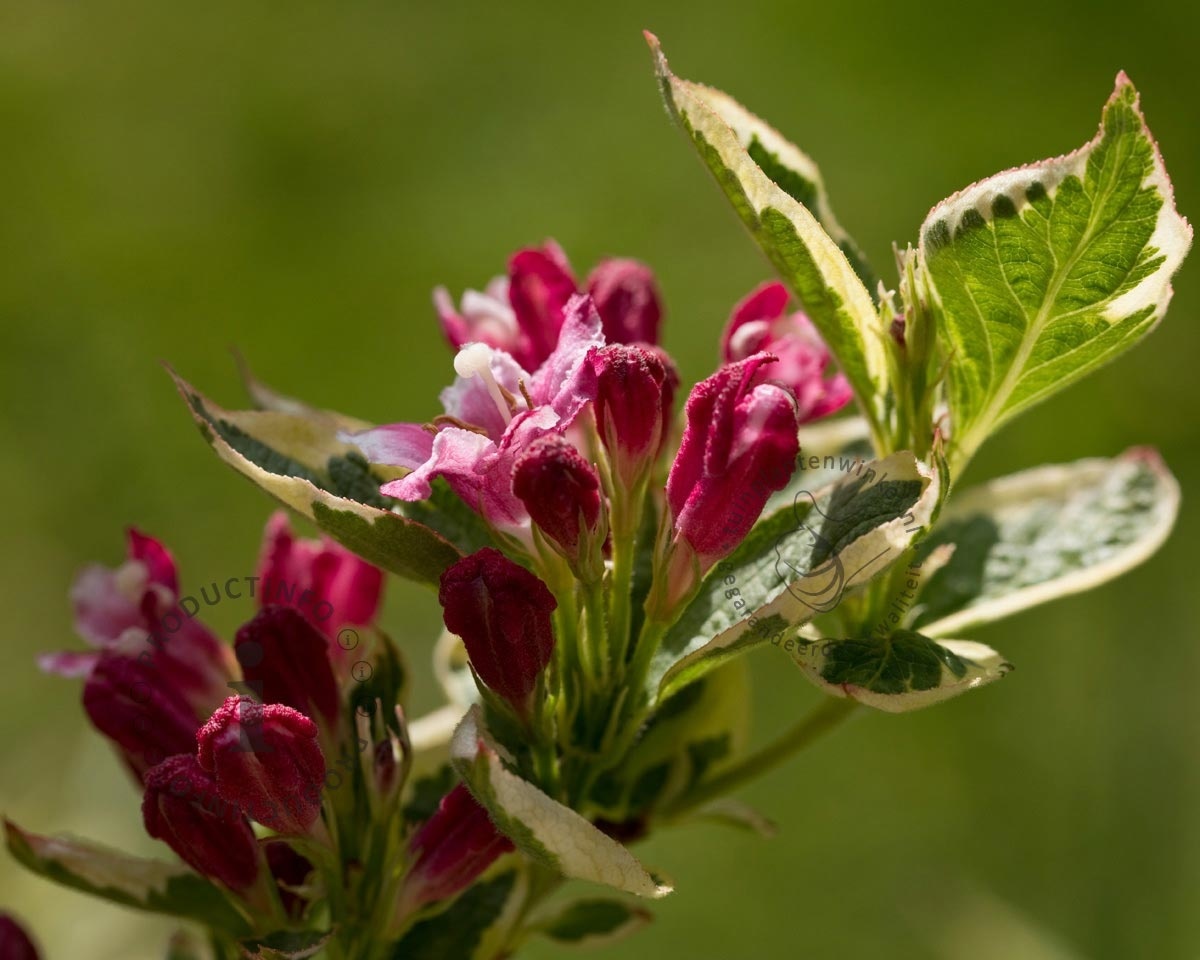 Weigela florida 'Monet' is een opvallende, bontbladige variant. De groene bladeren zijn langwerpig ovaal en hebben een crèmewitte rand. In de herfst komen er roze tinten bij. Dit dwergstruikje heeft een ronde, bossige groeiwijze. Weigela florida 'Monet' is geschikt om er klein haagje mee te vormen, staat mooi in elke tuin, ook aan de kust en in stedelijk gebied of kan in een sierpot op het balkon of terras staan. De Weigelia bloeit vaak tweemaal per jaar (mei/juni en september) met rozerode, trompetvormige bloemen, die heerlijk ruiken en bijen en vlinders aantrekken.