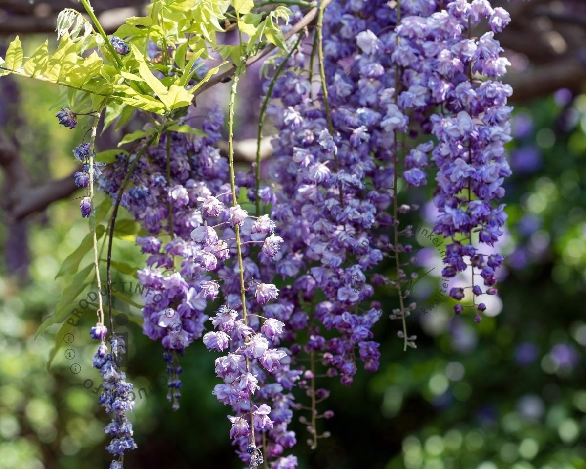 Wisteria floribunda 'Violacea plena' bloeit in mei en juni met een overvloed aan heerlijk geurende, lange, blauwpaarse bloemtrossen, die bijen en vlinders aantrekken. Door de dubbele bloemen is de naam Blauwe regen extra van toepassing. De tuinplant is uitermate geschikt om op te klimmen tegen muren, pergolas en schuttingen. Dit komt omdat het van nature een bosplant is, die een weg naar het licht zoekt. Zorg in ieder geval voor een stevige steun en bind de dikkere takken goed vast. Oudere takken krijgen de karakteristieke gedraaide vorm.