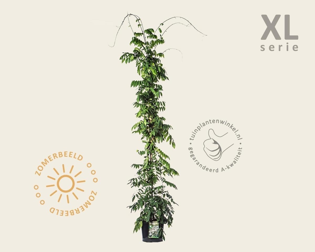 In onze webshop vindt u ook de Wisteria sinensis 'Alba' die ook wel bekend staat als witte regen en dus witte bloemtrossen heeft in plaats van blauwe. Wilt u direct een grotere klimplant? Dan kunt u ook kiezen voor de Wisteria sinensis 'Alba' XL die al wat groter is en het eerste jaar al hoger en verder in een pergola klimt als een kleinere variant.